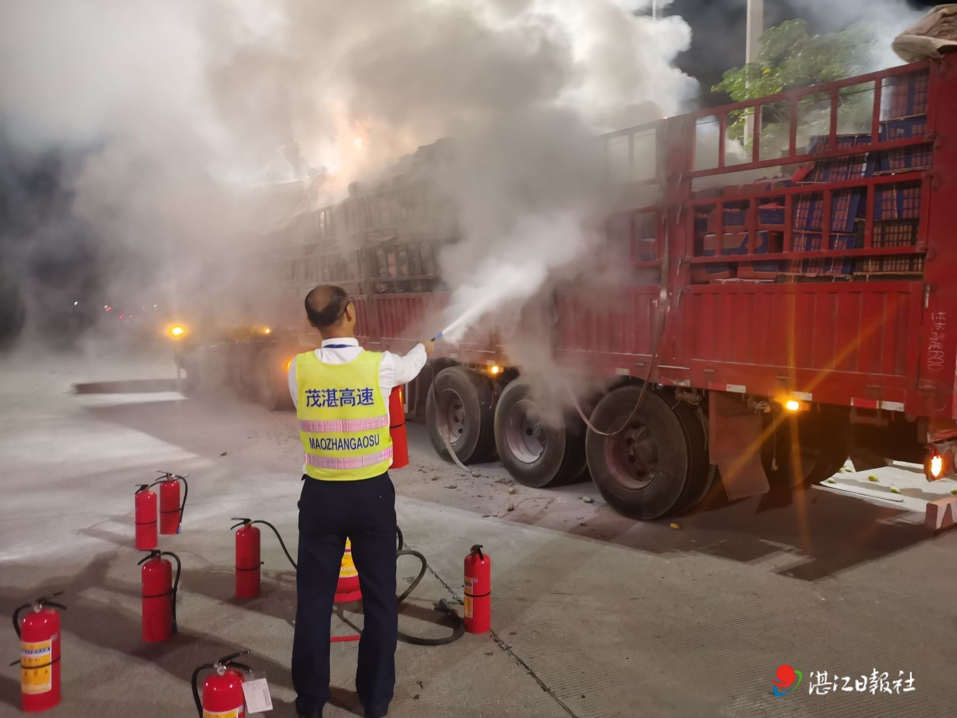 3月18日夜間,一輛滿載近30噸鮮芒果的大貨車途經茂湛高速時突然冒煙起火。危急時刻,司機經高速交警指引就近從塘?出口下高速,現場工作人員提前獲悉情況并緊急啟動火災事故應急預案,與高速路政、交警、養護、消防等聯勤人員合力滅火,最大程度為司機挽回經濟損失。