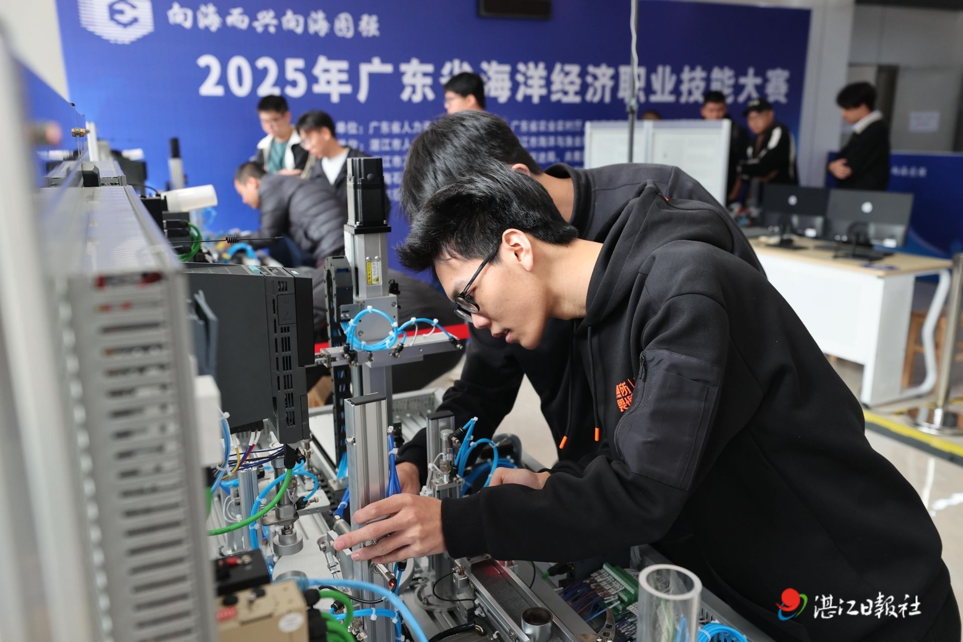 2025年廣東省海洋經濟職業技能大賽即將啟幕,大賽賽項之一的“養殖平臺控制系統維護技術”項目即將在湛江市技師學院舉行。開賽在即,記者走進該校高技能人才公共實訓基地內,探訪各地選手緊張的備賽實況。